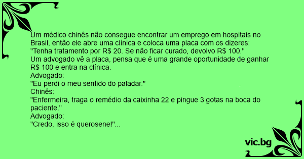 Um advogado vê a placa, pensa que é uma grande oportunidade de ganhar R$ 100 e entra na clínica.