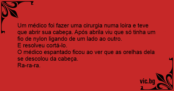 Um médico foi fazer uma cirurgia numa loira e teve que abrir sua cabeça. Após abrila viu que só tinha um fio de nylon ligando de um lado ao outro.