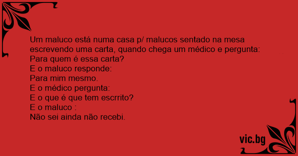 Um maluco está numa casa p/ malucos sentado na mesa escrevendo uma carta, quando chega um médico e pergunta: