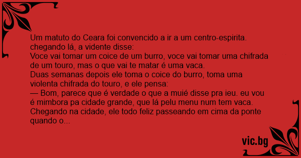 Um matuto do Ceara foi convencido a ir a um centro-espirita. chegando lá, a vidente disse: