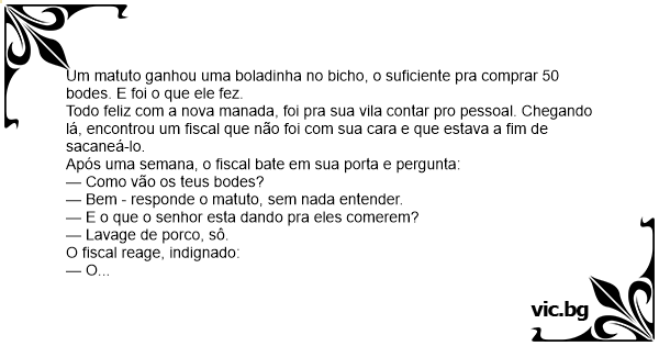 Um matuto ganhou uma boladinha no вiсhо, o suficiente pra comprar 50 bodes. E foi o que ele fez.