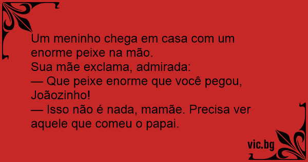— Isso não é nada, mamãe. Precisa ver aquele que comeu o papai.