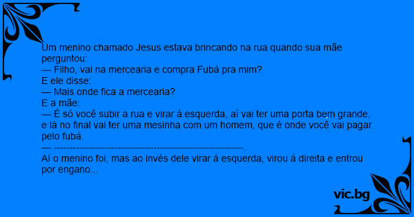 — Filho, vai na mercearia e compra Fubá pra mim?