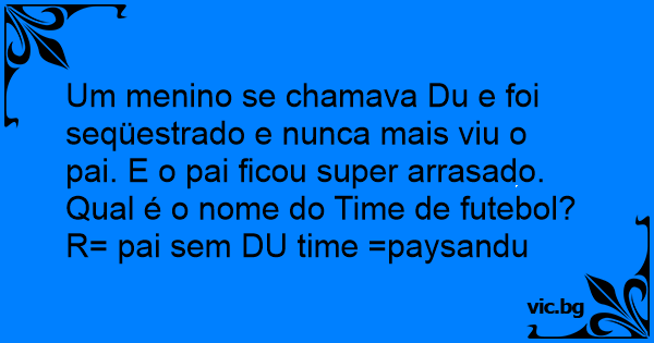 Um menino se chamava Du e foi seqüestrado e nunca mais viu o pai. E o pai ficou super arrasado. Qual é o nome do Time de futebol?