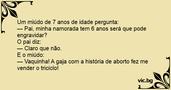 — Pai, minha namorada tem 6 anos será que pode engravidar?