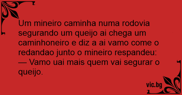 Um mineiro caminha numa rodovia segurando um queijo ai chega um caminhoneiro e diz a ai vamo come o redandao junto o mineiro respandeu:
