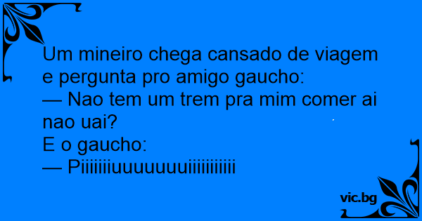 Um mineiro chega cansado de viagem e pergunta pro amigo gaucho: