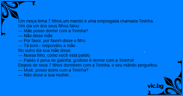 Depois de seus 7 filhos dormirem com a Tininha, o seu màrido perguntou: