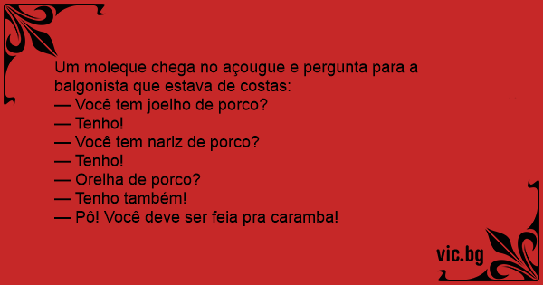Um moleque chega no açougue e pergunta para a balgonista que estava de costas: