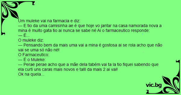 — E tio da uma camisinha ae é que hoje vo jantar na casa namorada nova a mina é muito gata tio ai nunca se sabe né Ai o farmaceutico responde: