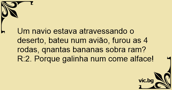 Um navio estava atravessando o deserto, bateu num avião, furou as 4 rodas, qnantas bananas sobra ram?