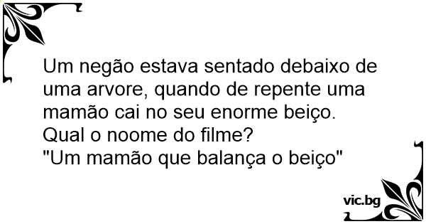 Um negão estava sentado debaixo de uma arvore, quando de repente uma mamão cai no seu enorme beiço.