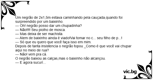O negrão baixou as calças,mas o baixinho não alcançou.