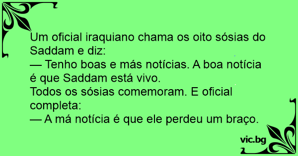 — Tenho boas e más notícias. A boa notícia é que Saddam está vivo.