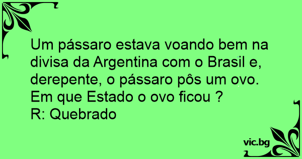 Um pássaro estava voando bem na divisa da Argentina com o Brasil e, derepente, o pássaro pôs um ovo. Em que Estado o ovo ficou ?