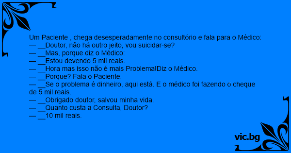 Um Paciente , chega desesperadamente no consultório e fala para o Médico: