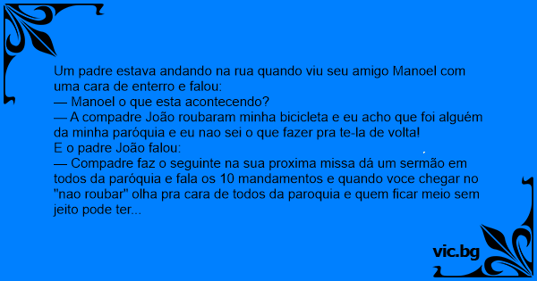 — A compadre João roubaram minha bicicleta e eu acho que foi alguém da minha paróquia e eu nao sei o que fazer pra te-la de volta!