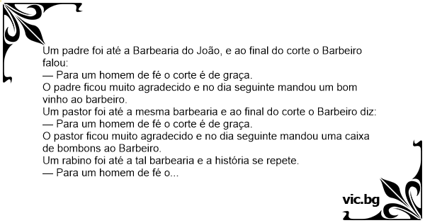 Um padre foi até a Barbearia do João, e ao final do corte o Barbeiro falou: