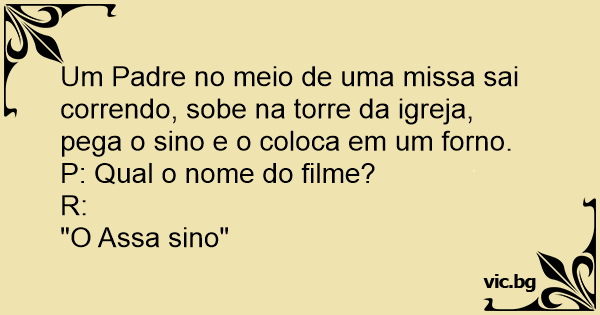 Um Padre no meio de uma missa sai correndo, sobe na torre da igreja, pega o sino e o coloca em um forno.