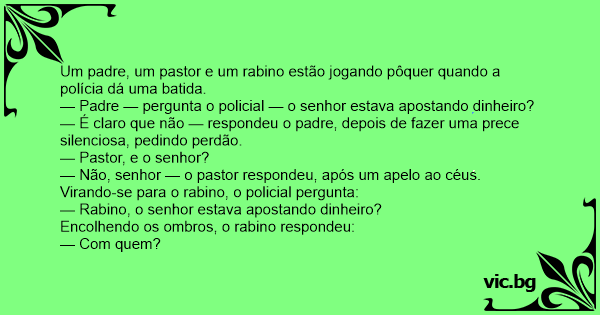 — Padre — pergunta o policial — o senhor estava apostando dinheiro?