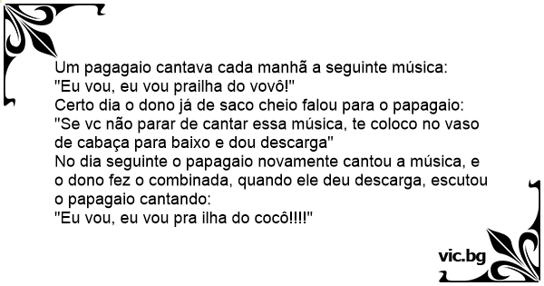 Um pagagaio cantava cada manhã a seguinte música:
