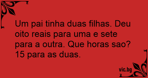 Um pai tinha duas filhas. Deu oito reais para uma e sete para a outra. Que horas sao?