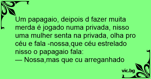 Um papagaio, deipois d fazer muita меrdа é jogado numa privada, nisso uma mulher senta na privada, olha pro céu e fala -nossa,que céu estrelado nisso o papagaio fala: