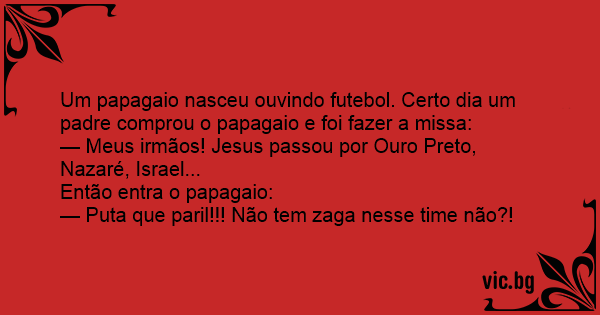 Um papagaio nasceu ouvindo futebol. Certo dia um padre comprou o papagaio e foi fazer a missa:
