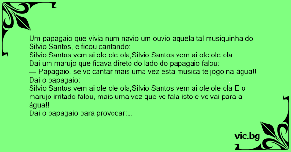 Um papagaio que vivia num navio um ouvio aquela tal musiquinha do Silvio Santos, e ficou cantando: