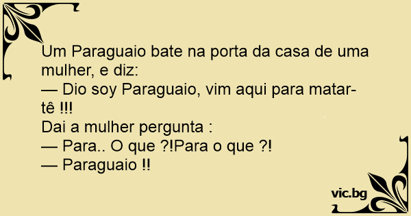 Um Paraguaio bate na porta da casa de uma mulher, e diz: