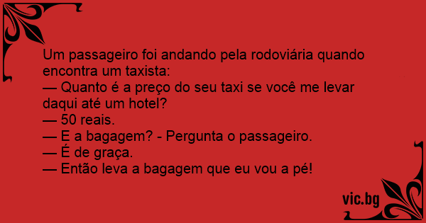 Um passageiro foi andando pela rodoviária quando encontra um taxista: