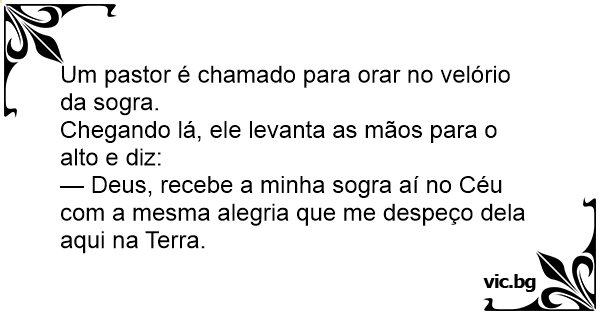 — Deus, recebe a minha sogra aí no Céu com a mesma alegria que me despeço dela aqui na Terra.