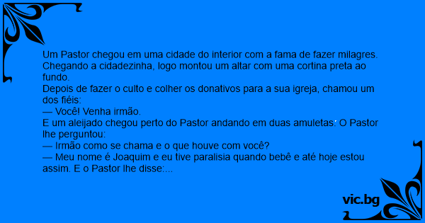 Um Pastor chegou em uma cidade do interior com a fama de fazer milagres.