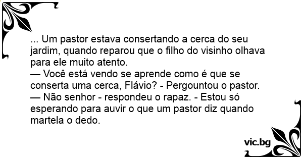 — Não senhor - respondeu o rapaz. - Estou só esperando para auvir o que um pastor diz quando martela o dedo.