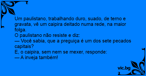 — Você sabia, que a preguiça é um dos sete pecados capitais?