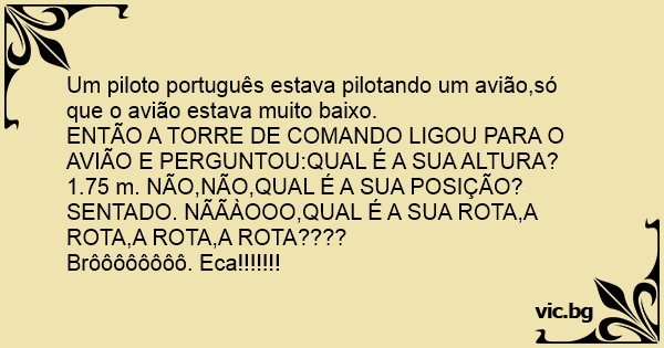 Um piloto português estava pilotando um avião,só que o avião estava muito baixo.