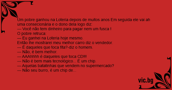 Um pobre ganhou na Loteria depois de muitos anos Em seguida ele vai ah uma consecionária e o dono dela logo diz: