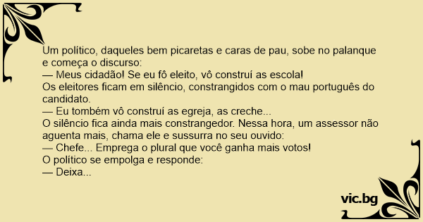 — Meus cidadão! Se eu fô eleito, vô construí as escola!
