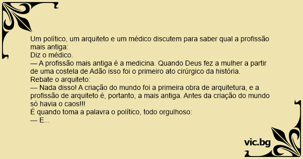 Um político, um arquiteto e um médico discutem para saber qual a profissão mais antiga: