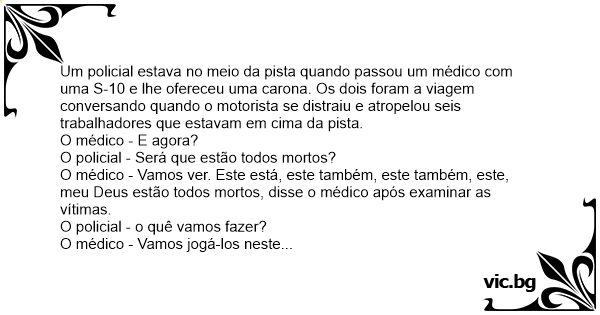 O policial - Você é médico? Não. Se o médico falou que está morto é porque está morto. E jogou o pobre coitado no despenhadeiro.