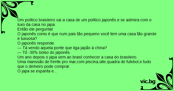 — Brasileiro. Como é que em um pais tão pobre você conssegue ter uma casa como essa?