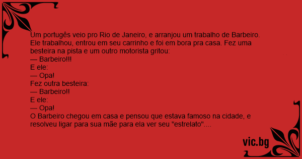 Um portugês veio pro Rio de Janeiro, e arranjou um trabalho de Barbeiro.