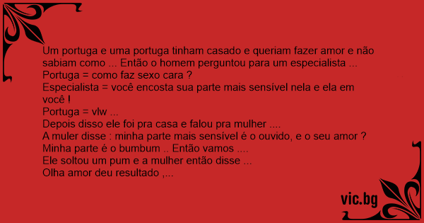 Um portuga e uma portuga tinham casado e queriam fazer amor e não sabiam como ... Então o homem perguntou para um especialista ...