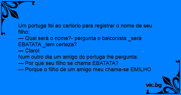 — Qual será o nome?- pergunta o balconista _será EBATATA _tem certeza?