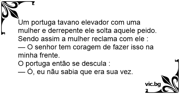 Um portuga tavano elevador com uma mulher e derrepente ele solta aquele реidо. Sendo assim a mulher reclama com ele :