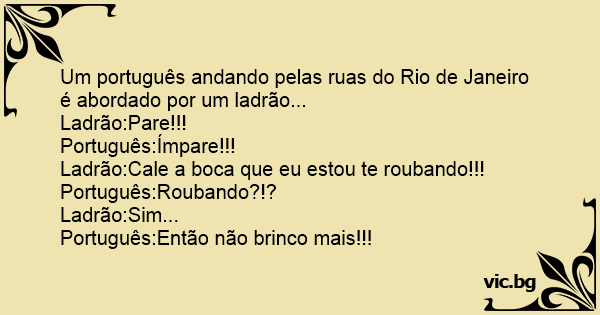 Um português andando pelas ruas do Rio de Janeiro é abordado por um ladrão...