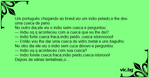 No outro dia,o portugues viu o indio chorando numa perna e disse: