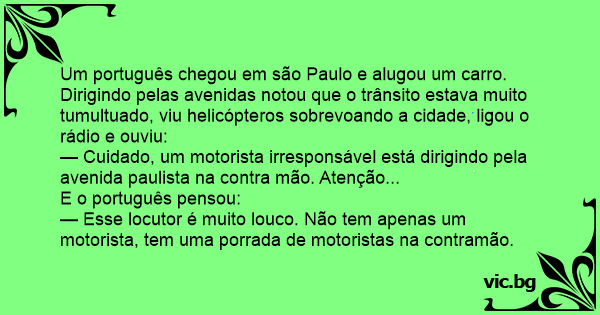 Um português chegou em são Paulo e alugou um carro.