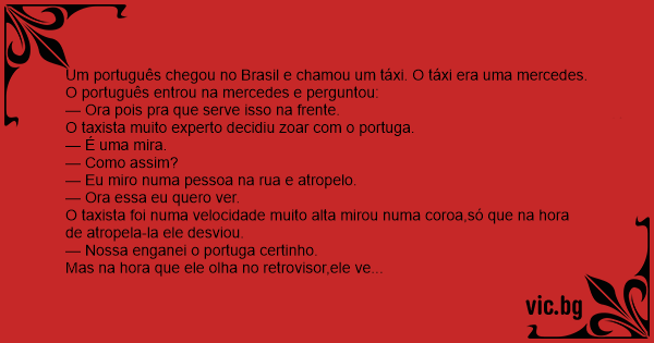 Um português chegou no Brasil e chamou um táxi. O táxi era uma mercedes.