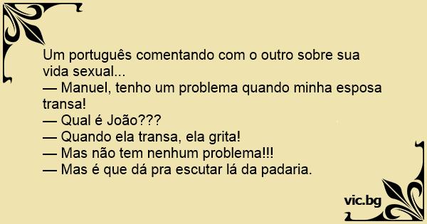 Um português comentando com o outro sobre sua vida sеxuаl...